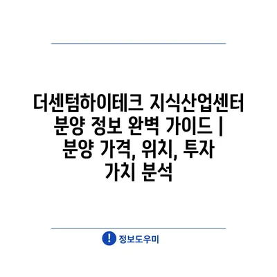더센텀하이테크 지식산업센터 분양 정보 완벽 가이드 | 분양 가격, 위치, 투자 가치 분석