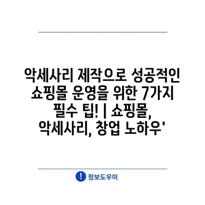 악세사리 제작으로 성공적인 쇼핑몰 운영을 위한 7가지 필수 팁! | 쇼핑몰, 악세사리, 창업 노하우’
