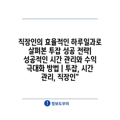 직장인의 효율적인 하루일과로 살펴본 투잡 성공 전략| 성공적인 시간 관리와 수익 극대화 방법 | 투잡, 시간 관리, 직장인”