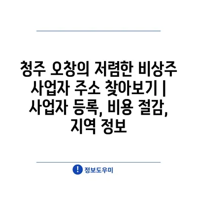 청주 오창의 저렴한 비상주 사업자 주소 찾아보기 | 사업자 등록, 비용 절감, 지역 정보