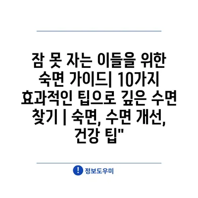 잠 못 자는 이들을 위한 숙면 가이드| 10가지 효과적인 팁으로 깊은 수면 찾기 | 숙면, 수면 개선, 건강 팁”