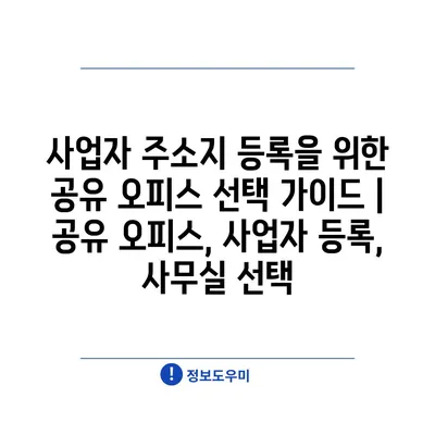 사업자 주소지 등록을 위한 공유 오피스 선택 가이드 | 공유 오피스, 사업자 등록, 사무실 선택