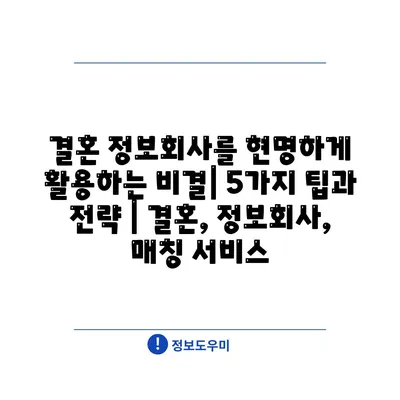 결혼 정보회사를 현명하게 활용하는 비결| 5가지 팁과 전략 | 결혼, 정보회사, 매칭 서비스