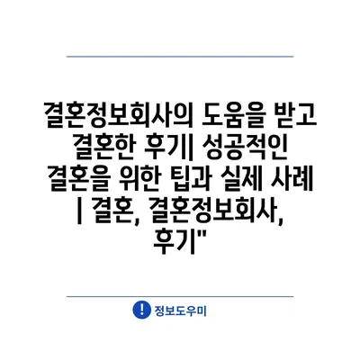 결혼정보회사의 도움을 받고 결혼한 후기| 성공적인 결혼을 위한 팁과 실제 사례 | 결혼, 결혼정보회사, 후기”