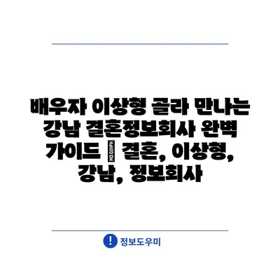 배우자 이상형 골라 만나는 강남 결혼정보회사 완벽 가이드 | 결혼, 이상형, 강남, 정보회사