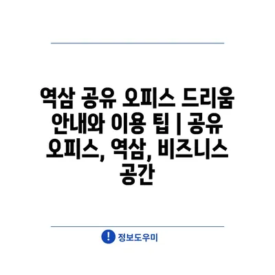 역삼 공유 오피스 드리움 안내와 이용 팁 | 공유 오피스, 역삼, 비즈니스 공간