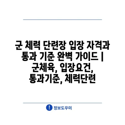 군 체력 단련장 입장 자격과 통과 기준 완벽 가이드 | 군체육, 입장요건, 통과기준, 체력단련