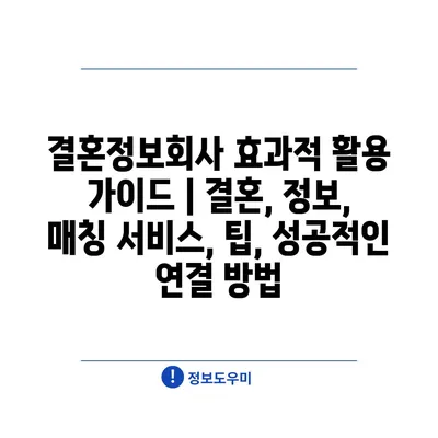 결혼정보회사 효과적 활용 가이드 | 결혼, 정보, 매칭 서비스, 팁, 성공적인 연결 방법