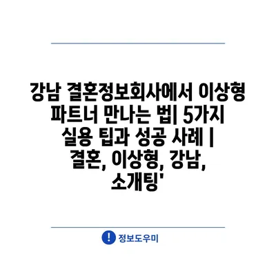 강남 결혼정보회사에서 이상형 파트너 만나는 법| 5가지 실용 팁과 성공 사례 | 결혼, 이상형, 강남, 소개팅’