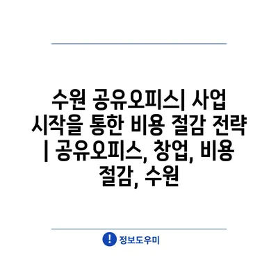 수원 공유오피스| 사업 시작을 통한 비용 절감 전략 | 공유오피스, 창업, 비용 절감, 수원