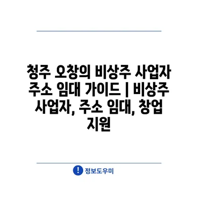 청주 오창의 비상주 사업자 주소 임대 가이드 | 비상주 사업자, 주소 임대, 창업 지원