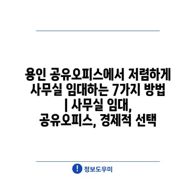 용인 공유오피스에서 저렴하게 사무실 임대하는 7가지 방법 | 사무실 임대, 공유오피스, 경제적 선택