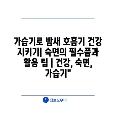 가습기로 밤새 호흡기 건강 지키기| 숙면의 필수품과 활용 팁 | 건강, 숙면, 가습기”