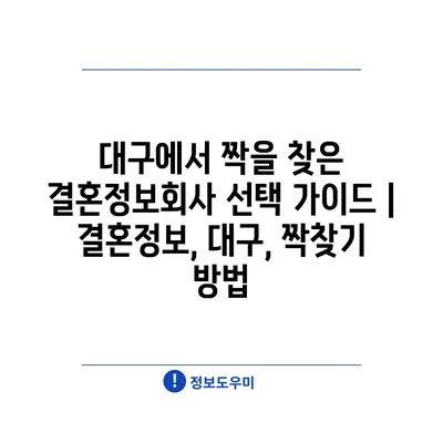 대구에서 짝을 찾은 결혼정보회사 선택 가이드 | 결혼정보, 대구, 짝찾기 방법