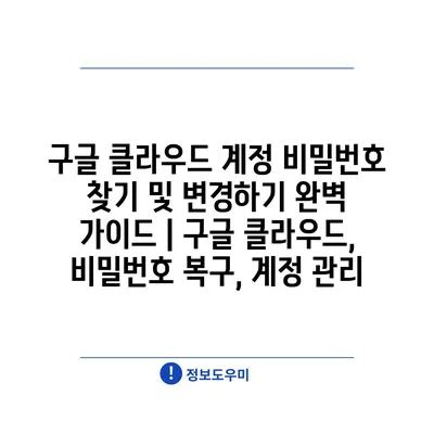 구글 클라우드 계정 비밀번호 찾기 및 변경하기 완벽 가이드 | 구글 클라우드, 비밀번호 복구, 계정 관리